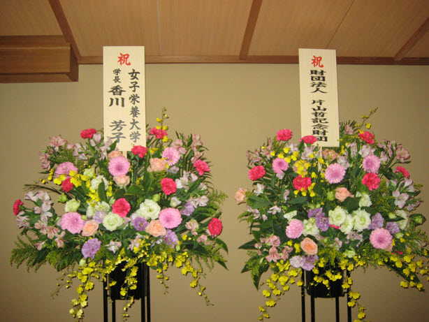 午後からは、和室宴会場「錦水」にある大広間「八千代」の間にて披露宴が開かれ、初めに如水流代表で新家元の父である青池栄の挨拶の後、女子栄養大学の香川芳子学長の祝辞メッセージの紹介がありました。如水流は初代家元宗照の頃より同学長と親交が深く大学茶道部の講師を担っております。