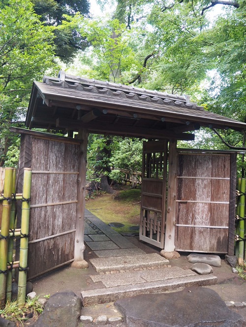 都千家如水流による令和元年初夏の茶会は、靖国神社の境内の奥まった日本庭園に配置された茶室・洗心亭で行われました。 広間では片山宗紗家元と難波宗衣先生が薄茶席を持ち、小間では羽根宗陽先生と後藤宗久先生が濃茶席を持たれました。