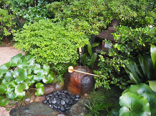 都千家如水流による令和元年初夏の茶会は、靖国神社の境内の奥まった日本庭園に配置された茶室・洗心亭で行われました。 広間では片山宗紗家元と難波宗衣先生が薄茶席を持ち、小間では羽根宗陽先生と後藤宗久先生が濃茶席を持たれました。